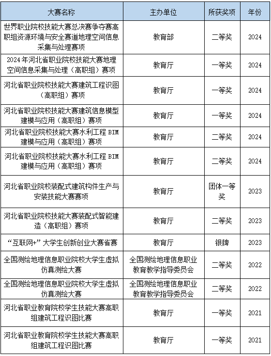 近三年来指导学生获得职业技能竞赛国赛二等奖1项,省赛一等奖6项,省赛二等奖5项。教师参加全国职业院校教学技能大赛教学能力比赛省赛一等奖1项、二等奖2项、三等奖1项。