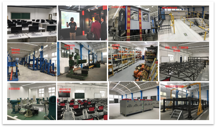 智能建造技术中心总建筑面积9500余平方米,设有结构实验中心、钢结构实训中心、实践体验中心、建筑文化展馆、智能建造技术中心、工种综合实训场等30余个实践教学场所。仪器设备总值1940余万元,现有工法楼、ICEPT实训集成系统、2000kN多功能结构试验系统、自平衡加载系统、结构工程创新实验平台等1200台件,中心通过营造既像企业车间又便于实训教学的生产性实训环境,形成了以“走中学、乐中学、玩中学、做中学、创中学”为特色的“五学”人才培养模式。