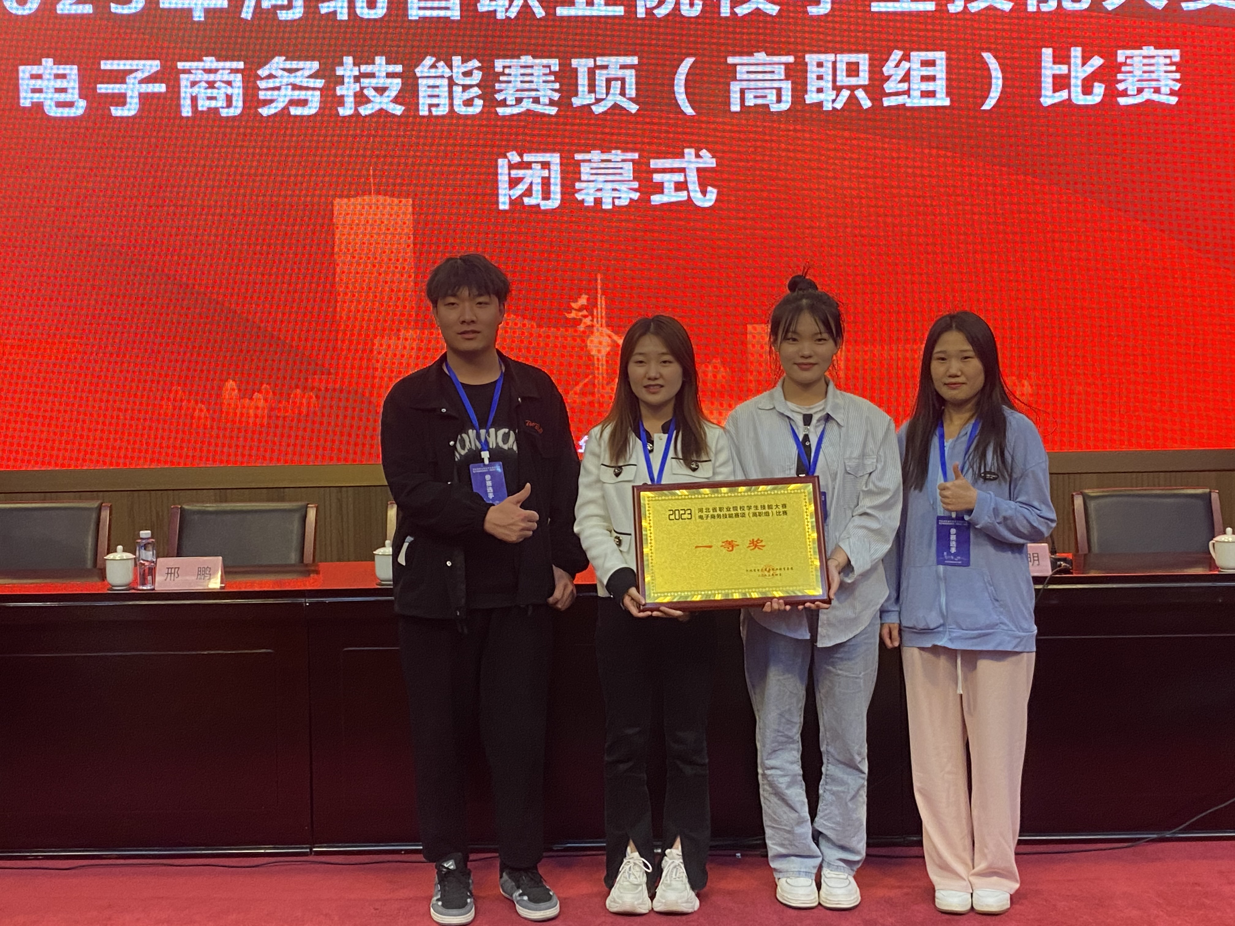 4月16日,2023年河北省职业院校学生技能大赛高职组电子商务技能赛项圆满落下帷幕,我系电子商务专业武志龙、丁佳丽、郝雨欣、刘子瑞四名同学组成的代表队(指导老师赵胜、李国娟)荣获河北省一等奖第2名。