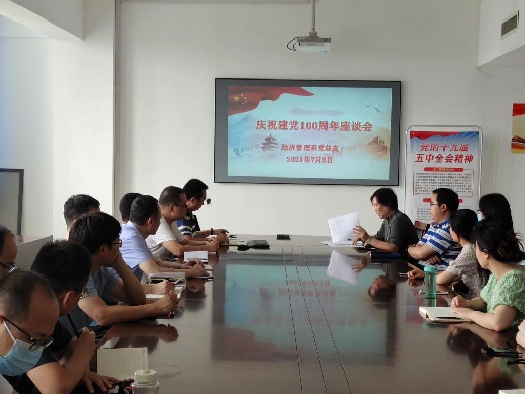 7月2日下午16:00,经管系在6#609会议室开展了庆祝建党100周年座谈会,对获得学院七一表彰的优秀共产党员教工进行通报,共同回顾了党的光辉历程,激励大家牢记为党育人、为国育才使命,会议由许光书记主持。
