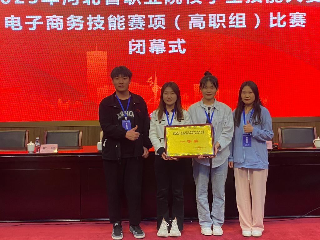 4月16日,2023年河北省职业院校学生技能大赛高职组电子商务技能赛项圆满落下帷幕,我系电子商务专业武志龙、丁佳丽、郝雨欣、刘子瑞四名同学组成的代表队(指导老师赵胜、李国娟)荣获河北省一等奖第2名。