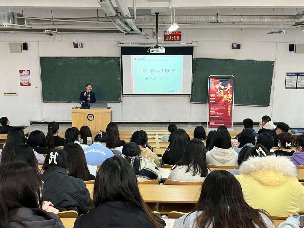 上午10点,河北古顺酿酒股份有限公司副总经理王总对20级毕业班学生进行宣讲,并介绍古顺酒厂相关情况。随后在603会议室中,双方就企业的人才需求,岗位空缺等情况进行洽谈。此次企业来访,为双方未来进一步的产教融合,专业人才培养等方面奠定基础。