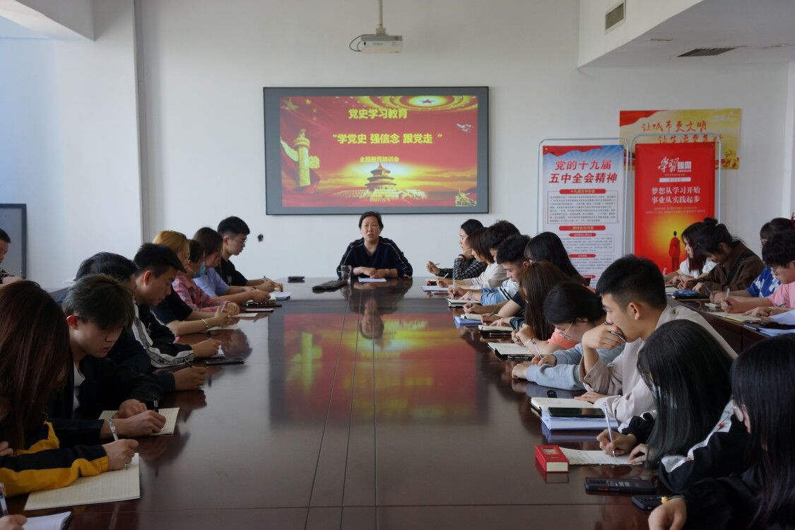 为进一步贯彻落实科学发展观、坚定信念永远跟党走,将党的伟大章程传递给每一个同学,我系于5月5号在六号楼609开展“学党史,强信念,跟党走”党史教育主题活动。本次教育学习由系党总支书记书记许光主讲,副书记柴民杰、辅导员陈昕和董玉老师及全系班干部参加此次学习。