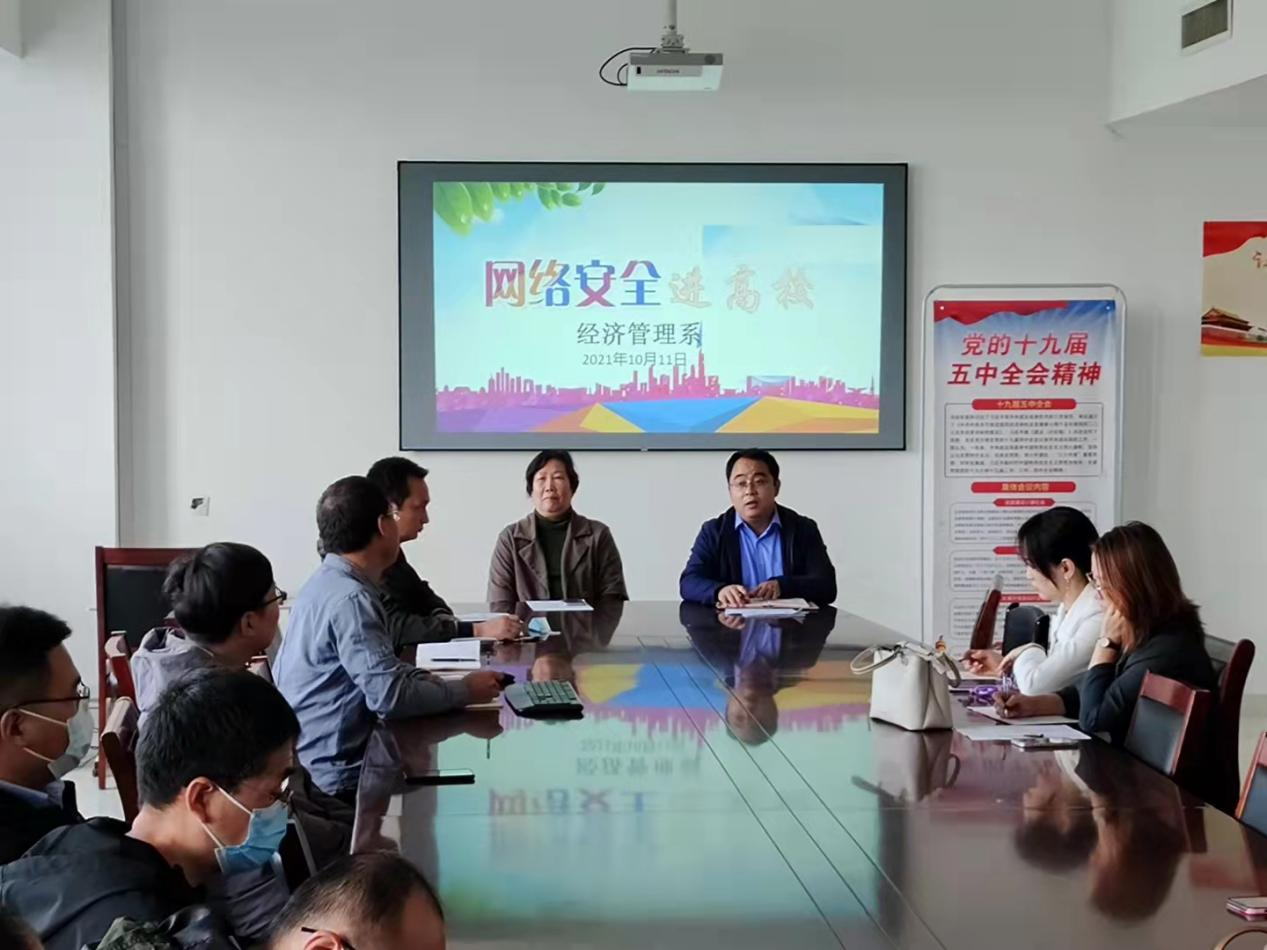 经管系高度重视学生的网络安全教育及宣传周校园日活动,精心部署、安排师生活动。11日下午召开全系教职工大会,传达活动要求、安排活动计划,组织主题演讲,我系所有教职工用心准备、积极参加。