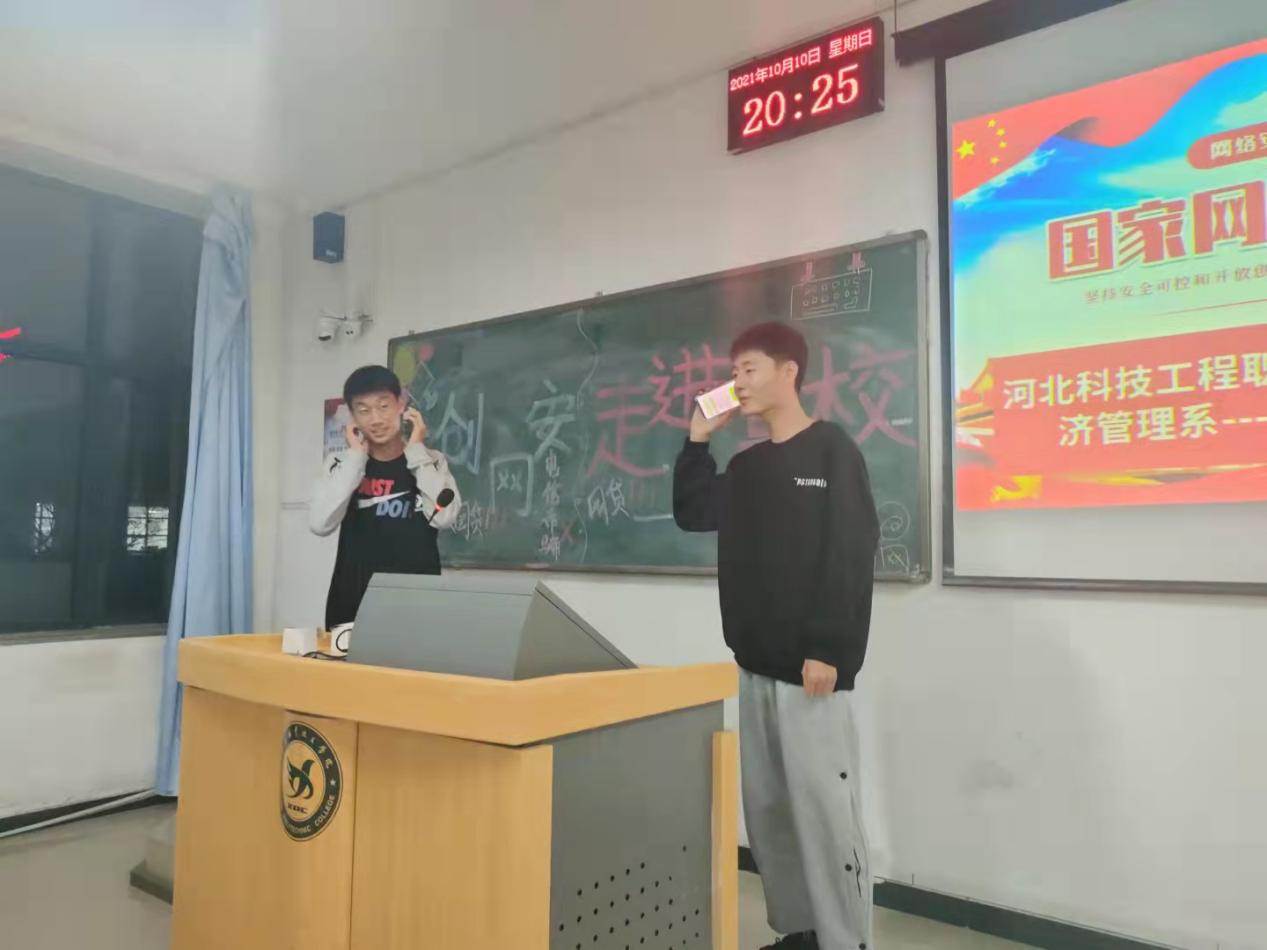 根据《河北省教育厅关于组织开展2021年国家网络安全宣传周校园日活动的通知》和学院要求,10月11日-17日我系开展“共创网安走进高校”主题活动。
