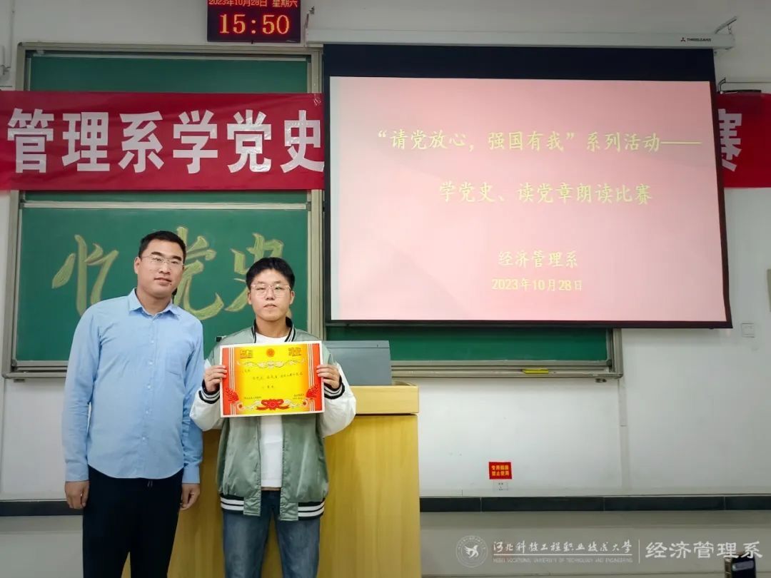 开展党史学习教育,是牢记初心和使命,增强历史自觉,开创民族复兴历史伟业的迫切需要。为进一步凝聚同学们奋斗强军的意志力,我系23级营销班组织的“学党史,读党章”朗诵比赛于10月28日14:30在C-103开展。此次参加比赛的同学共15名。23级辅导员武学潮老师、学生会干部及各班班委出席活动。