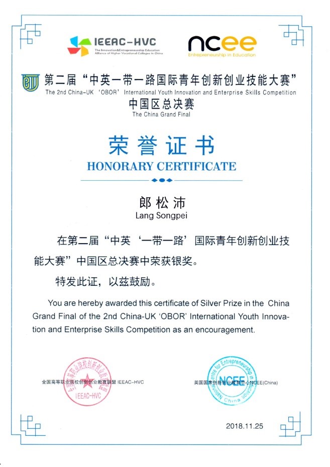 华北赛区一等奖,二等奖2个;中国赛区银奖,铜奖 |
