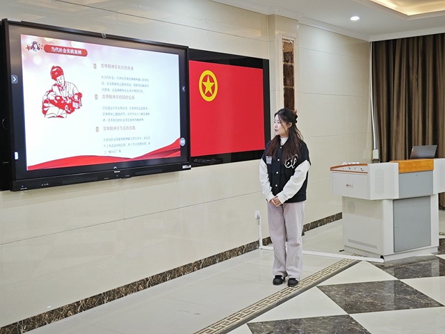 活动伊始,郝恬贺同学围绕“雷锋的生平简介”、“什么是雷锋精神”、“讲雷锋故事”、“读雷锋名言”、“当代社会与雷锋精神”、“践行雷锋精神”六个方面展开。郝同学指出雷锋的精神拥有着广阔而深沉的内涵,他不单单是一个人、一个代号,更是新时代人类追求和谐的象征。这种精神,体现了中华民族的传统美德,顺应了社会进步的时代潮流,滋养着一代代中华儿女的心灵。活动过程中,同学们积极发言,阐述自己对雷锋精神的理解,提出我们要全心全意为人民服务,忠于党和人民。活动最后,同学们纷纷表示作为新时代青年的我们应肩负起传承雷锋精神的重任,让雷锋精神在中国人民的传承下不断迸发出更大的活力。