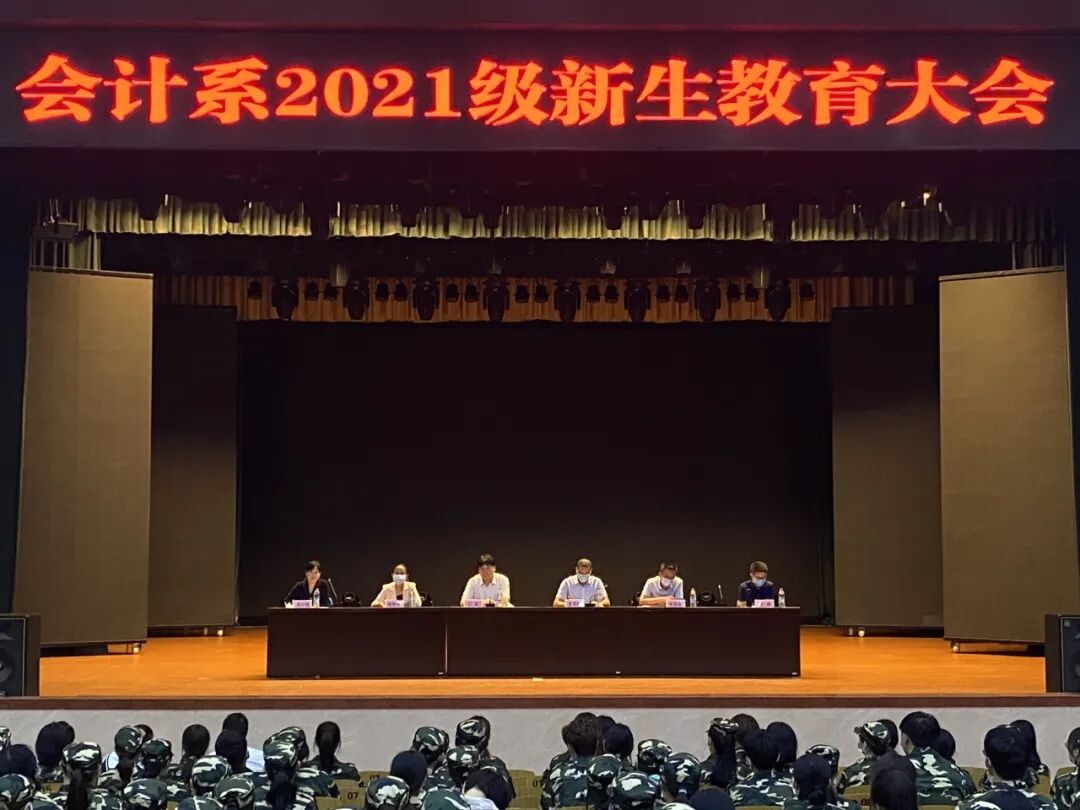 春耕夏耘,经风沐雨,秋风送爽之时,我系迎来了2021级新生,为帮助我系新生快速适应校园生活。9月21日,我系于红星礼堂召开新生入学大会。系党总支石磊书记、主任曹新锋老师、党总支陈晔桦副书记、副主任申春峰老师、财务会计教研室主任韩小琼老师、管理会计教研室主任王磊老师及2021级全体新生参加了此次大会。
