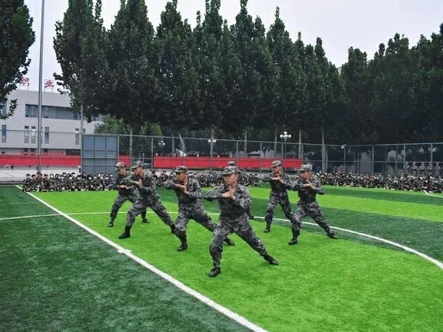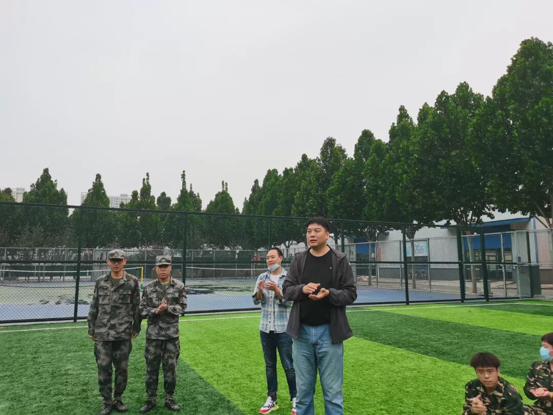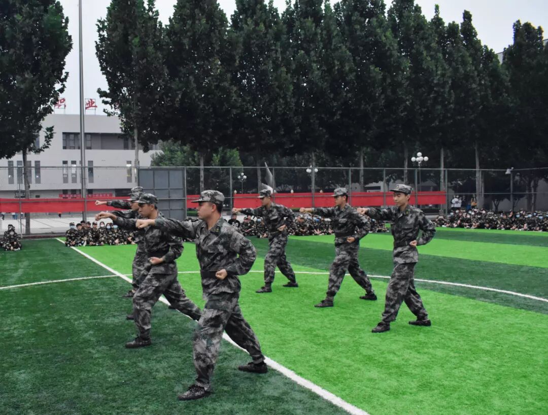 经过刻苦的集训,全体军训教官此刻精神状态饱满,英姿飒爽,嘹亮的口号飘荡在校园上空。此次汇报表演有队列展示、军体拳等精彩的呈现,一招一式,整齐划一,势如破竹,充分展现了新时代青年钢铁般的意志,青年们昂扬的姿势在绿茵场上肆意绽放,引得场下的新生阵阵欢呼喝彩。随后,石磊书记发表讲话,他寄语新生要明确目标,树立信心,传承军训教官不怕苦不怕累的优良作风,积极学习军事技能,自觉接受爱国主义、革命英雄主义、集体主义教育,做好时代的接班人。汇报表演的最后,冯渊老师作为新生的辅导员,对新生提出更高的要求与期盼,他勉励各位新生要在军训中锻炼意志,增强团结协作意识,不断超越自己。