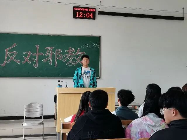 为深入进行“拒绝邪教”活动,进一步增强反邪教警示教育的针对性和有效性,提高学生抵御邪教的能力,培养学生正确的世界观、人生观。我系各班级于4月15日开展了“崇尚科学、反对邪教”主题班会。