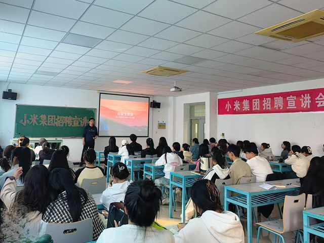 会议伊始,司方主讲人对其公司进行了简单介绍。他指出,小米科技有限责任公司是一家以从事科技推广和应用服务业为主的企业。其公司掌握着丰富的前沿动态和实践经验。在发展过程中始终坚持多元化发展战略,在技术研发和产品创新方面持续发力。为保持创业精神,大胆启用创新型人才,其公司实行面向大学生的开放政策,先一步对毕业生进行素质培养,提升他们的工作能力与就业态度。接着,主讲人表示,小米公司注重员工培养,提倡开放、创新、快速迭代的企业文化,坚持营造充满活力的工作环境。最后,主讲人向同学们介绍了面试要求及注意事项,对同学们的到来表示热烈欢迎与期待。