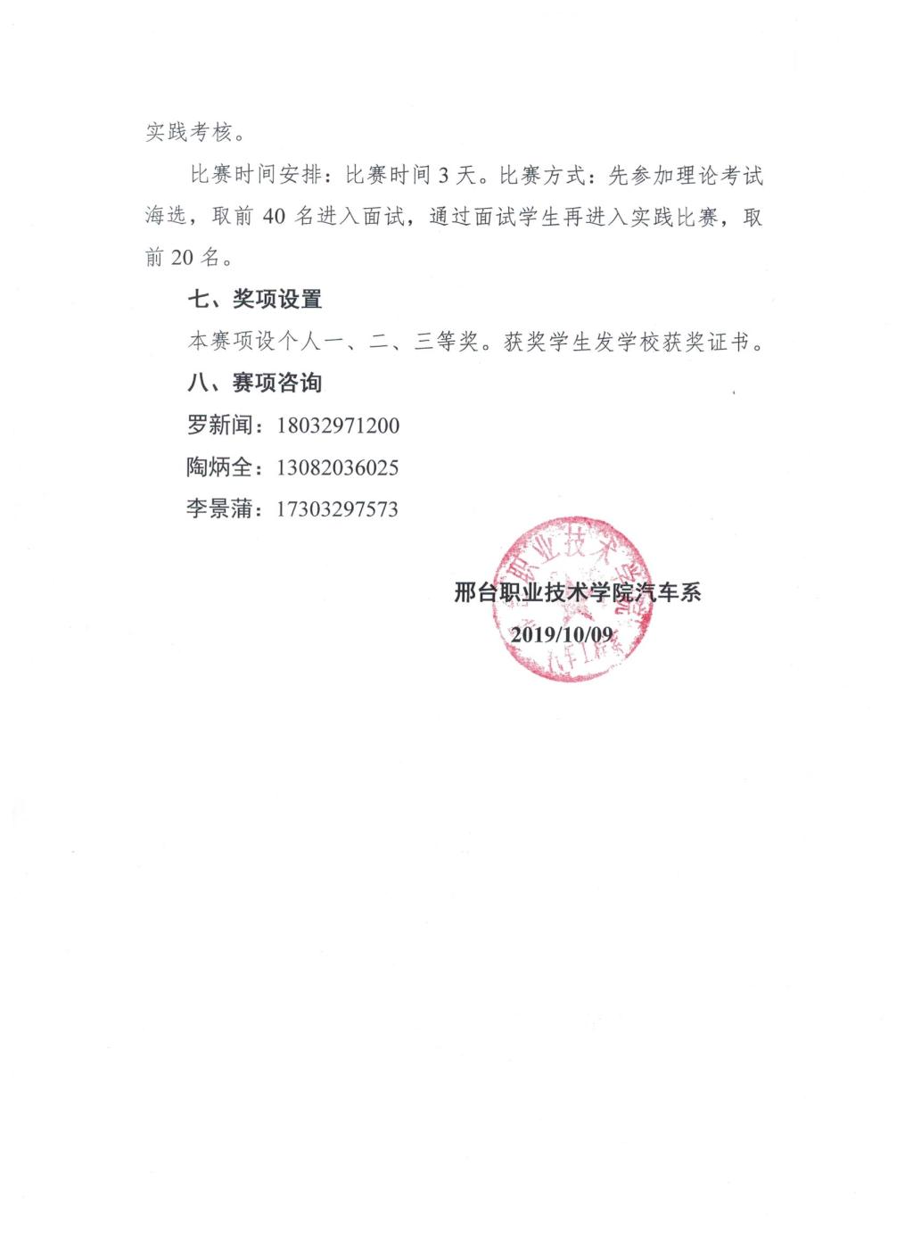 比赛日期:10月12日。晚上7:00—8:00点理论考试,10月13日下上午9:00—12:00面试,10月14日上午9:00—12:00
