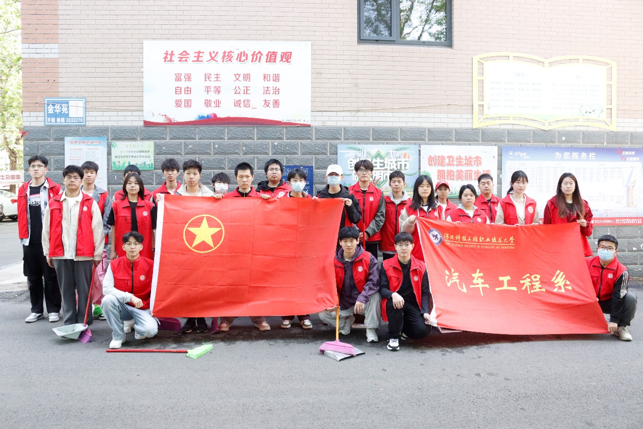 2025年4月19日,汽车系组织志愿者走进金华苑社区,开展“清洁家园”垃圾清扫志愿服务。