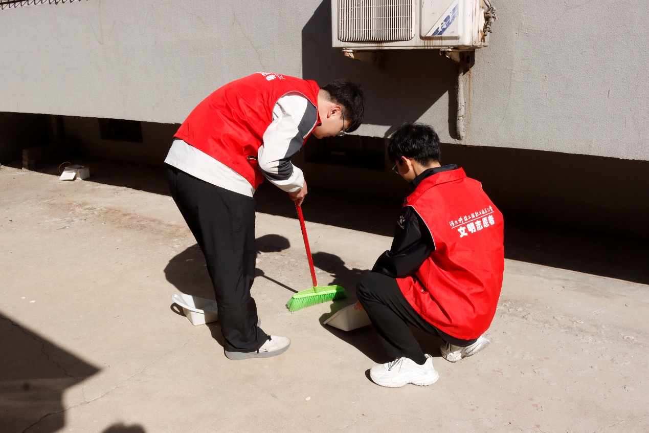 三月春晖,微风和畅。3月29日上午8点至11点,金华舒怡苑小区内,多了一群朝气蓬勃的“红色身影”——汽车系的同学们身着鲜艳的红色志愿小马甲,手持笤帚、簸箕,开展了一场温馨有序的卫生清扫志愿服务。
