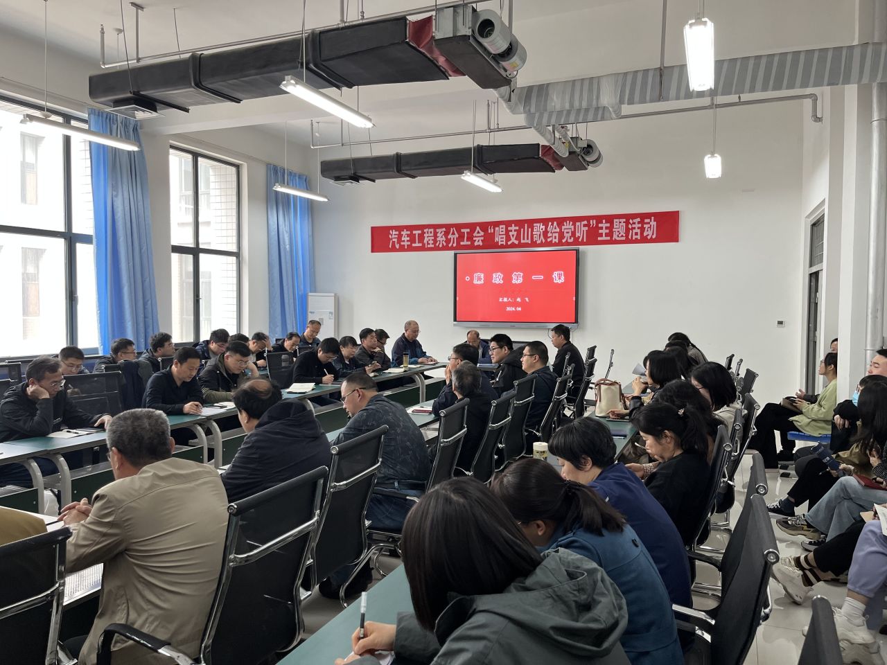 4月10日,我系于汽车楼304会议室召开廉政教育专题党课,新能源党支部书记、党总支委员赵飞作专题讲授,全系教职员工参加。