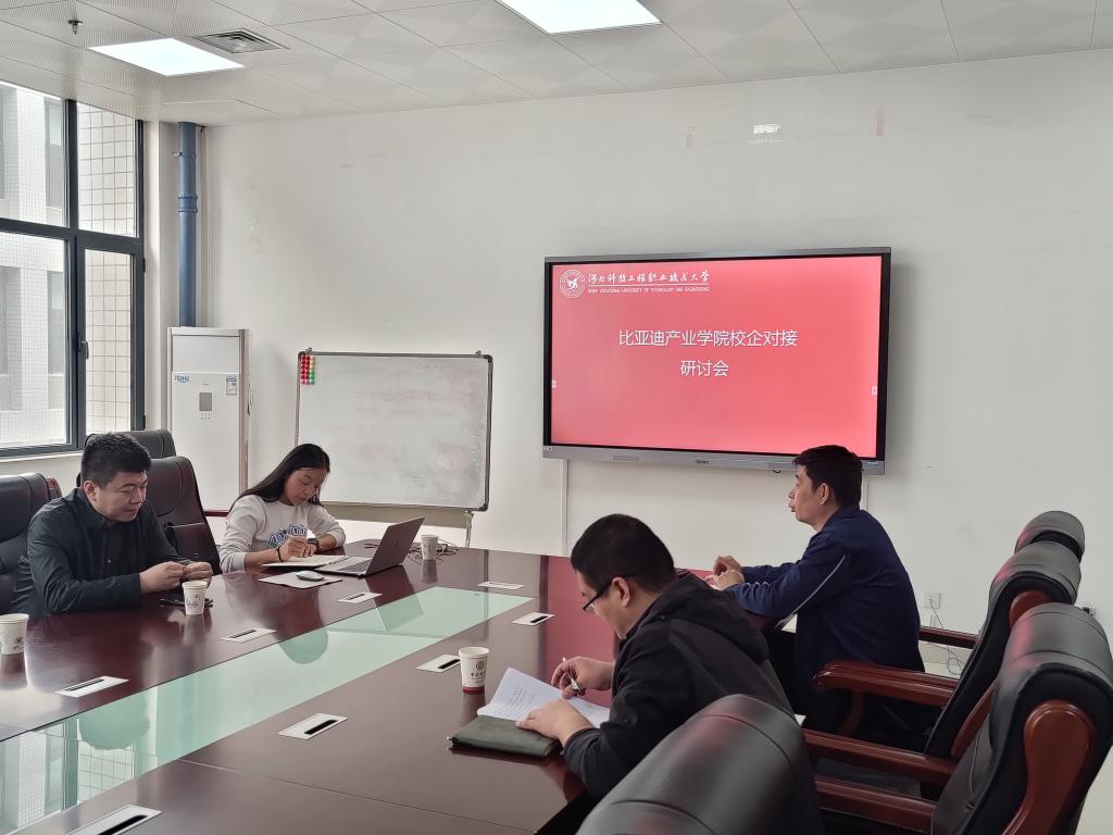 首先,于万海主任对到访嘉宾表示欢迎并将beat365办学历史及我系专业发展情况进行了介绍;徐小红经理就新能源及智能网联相关专业的建设方案和产业学院相关情况做了详细介绍;马建伟老师和冯子亮老师分别就专业建设方案和产业学院相关细节问题与企业方进行了研讨。