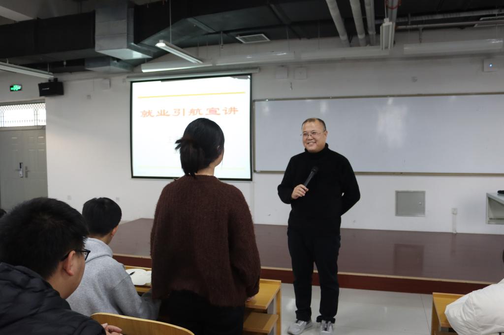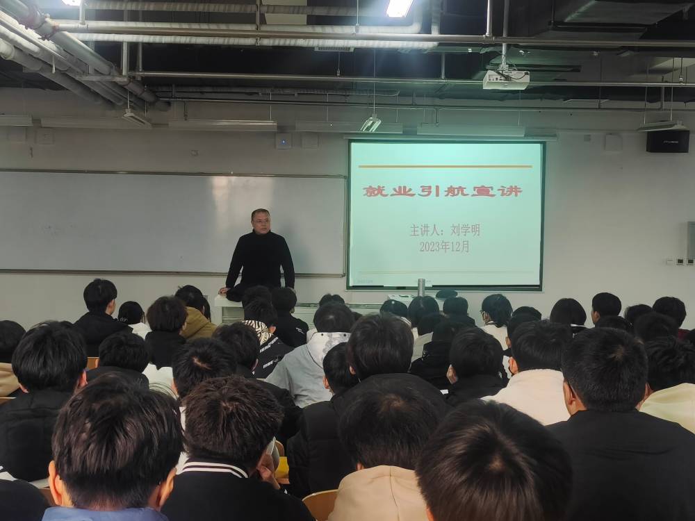 逐梦金秋 “职”达未来。为引导同学们树立正确的就业观、择业观,帮助学生了解当前就业形势和职场现状,提高就业竞争力,我系于12月6日下午在机电楼五楼开展就业引航计划宣讲话动,由我系党总支副书记刘学明主讲,2022级学生干部和2023级部分学生参加了本次宣讲活动。