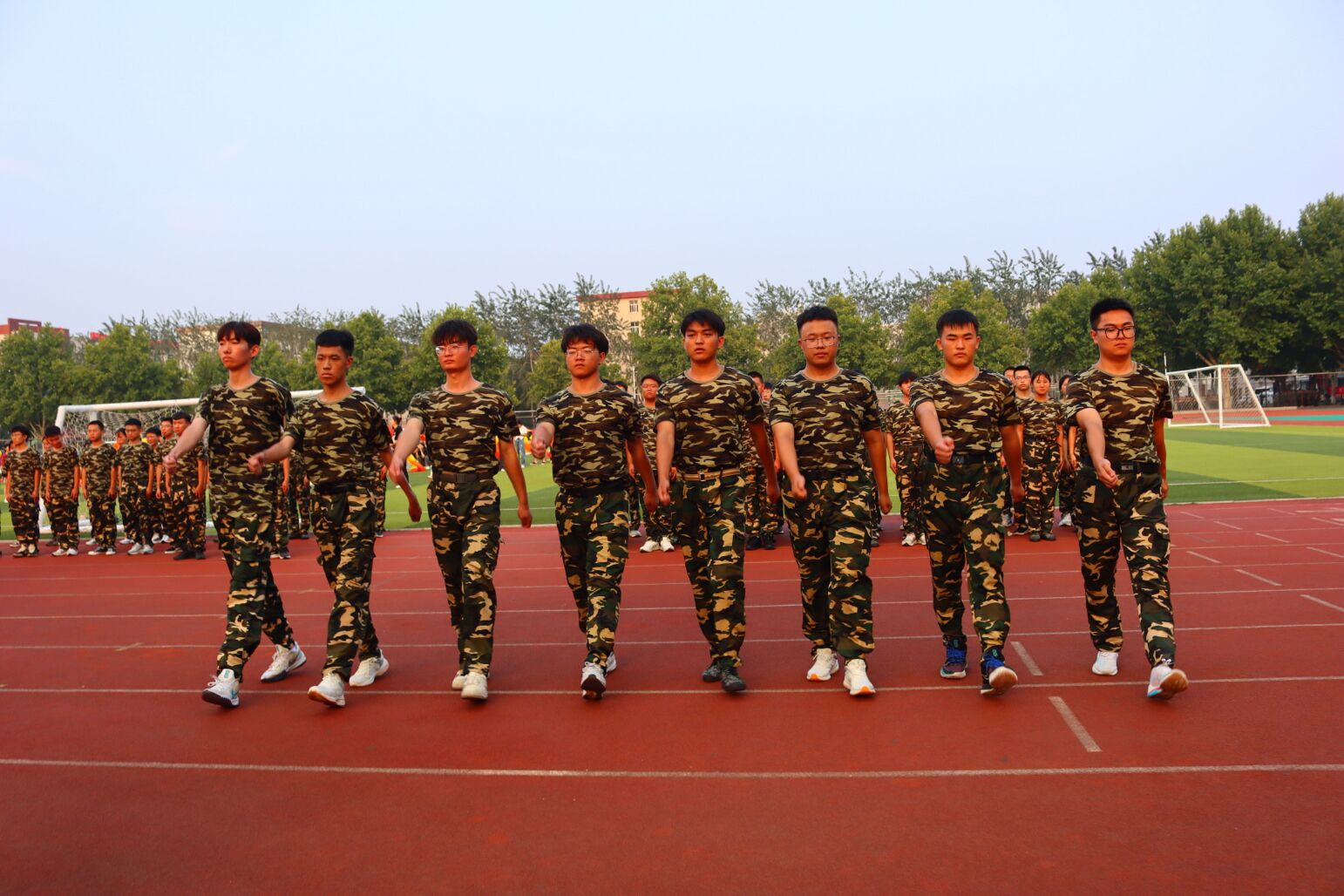 秋风吹动红旗,迎着旭日的阳光,田径场上的斑斑迷彩也镀上一层金光。随集结口号响起新一天的军训生活正式开始。