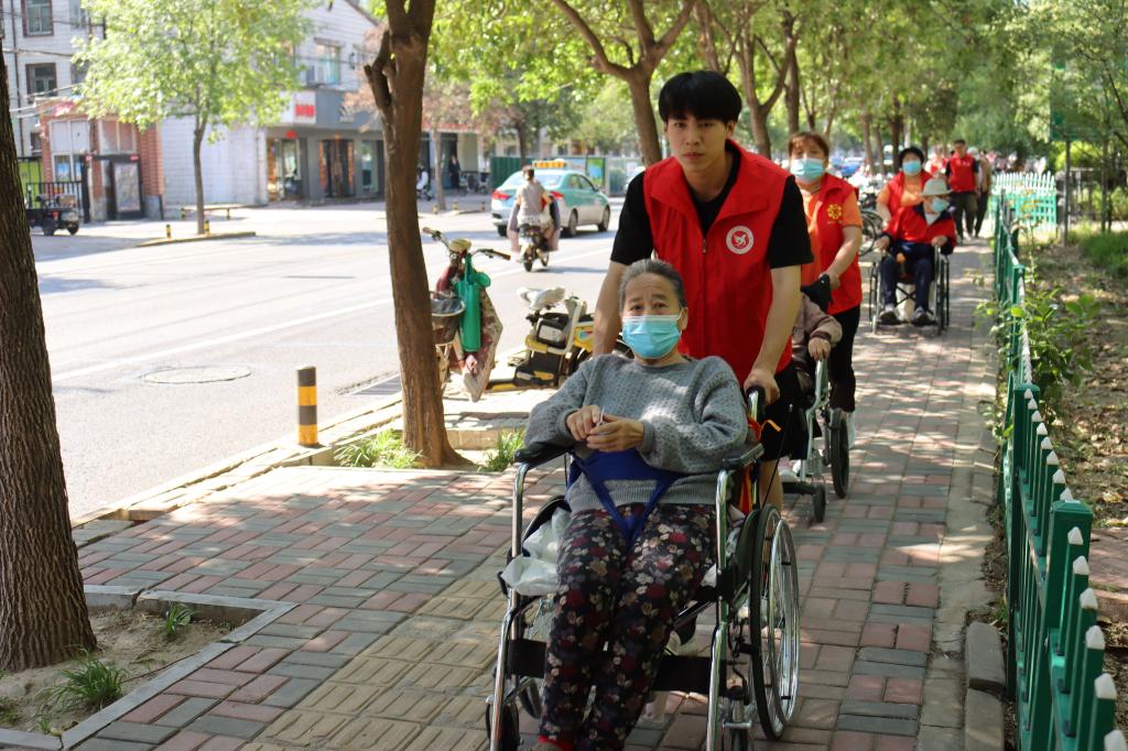 活动开始,各志愿者照例进行自检,确保自身健康。在养老院进行了短暂的慰问后,志愿者们有序选择需要陪同的老人,从养老院出发排队前往达活泉公园。途中我系志愿者与老人亲切交流,安抚老人情绪,细心的为老人遮阳、喂水。到达达活泉公园后,我系学生放慢脚步与老人享受公园环境,讨论美丽风景,或停留在喷泉或湖水周边,为老人们合影留念。临近中午时,我系志愿者陪同老人们有序离开公园返回养老院,陪伴时间虽短,却为长期在养老院生活的老人们传递了朝气与热情。