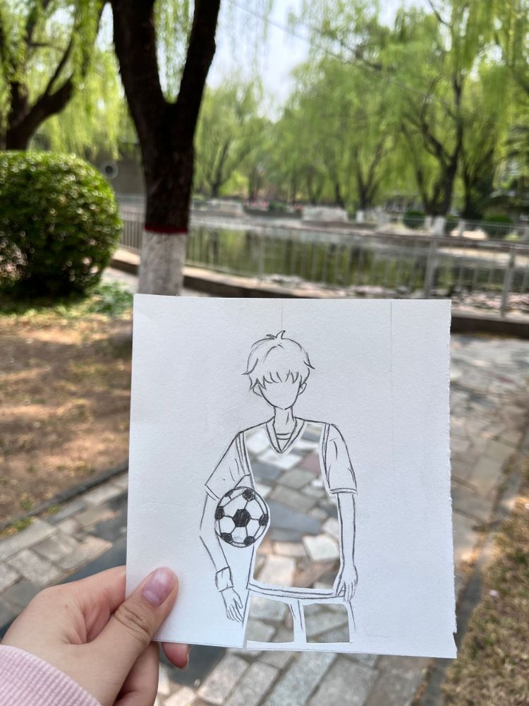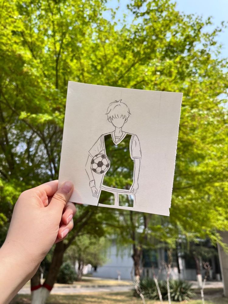 参与绘画和拍照的还有三位女大学生。贾妞是来自服装工程系的一名大学生,专业上占据优势的她,通过在纸上绘画和镂空的裁剪,设计出了青春洋溢的篮球少年、温柔典雅的旗袍美人、笑盈盈的双马尾少女……