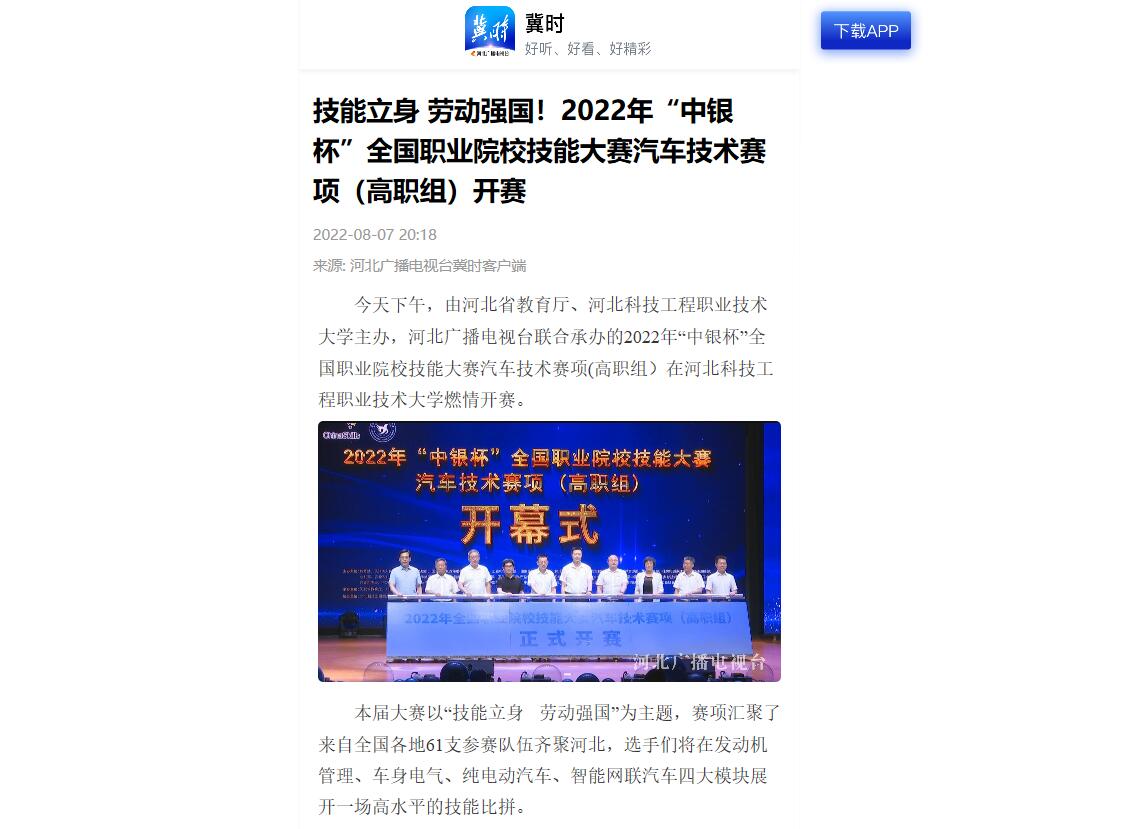 今天下午,由河北省教育厅、beat365英国官方网站主办,河北广播电视台联合承办的2022年“中银杯”全国职业院校技能大赛汽车技术赛项(高职组)在beat365英国官方网站燃情开赛。