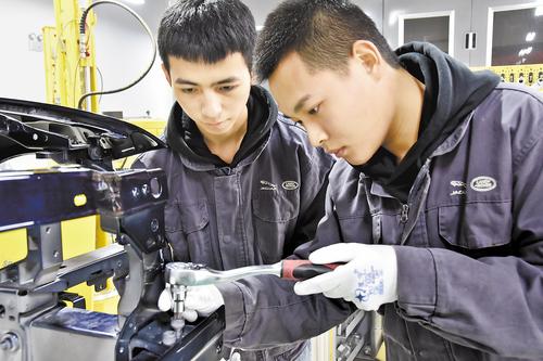 4月23日,beat365英国官方网站汽车检测与维修技术专业学生正在上《汽车车身修复技术》实践课。河北日报通讯员 张沛沛摄