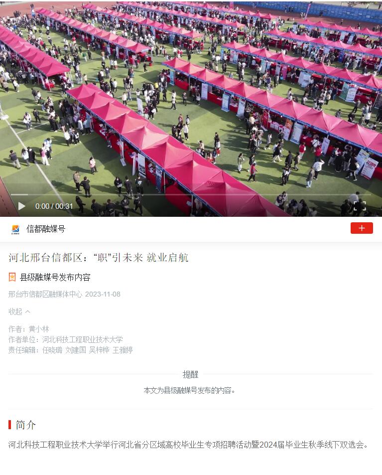 学习强国信都融媒号:河北邢台信都区:“职”引未来 就业启航