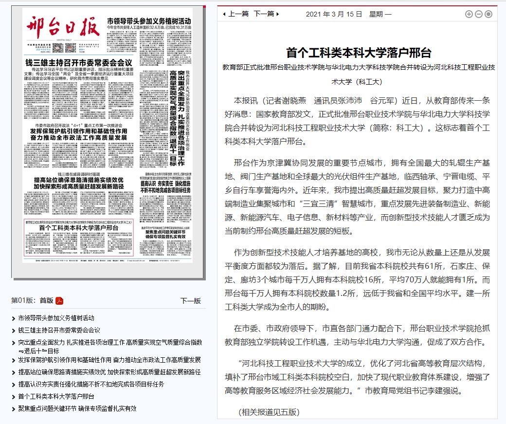 教育部正式批准邢台职业技术学院与华北电力大学科技学院合并转设为beat365英国官方网站(beat365)