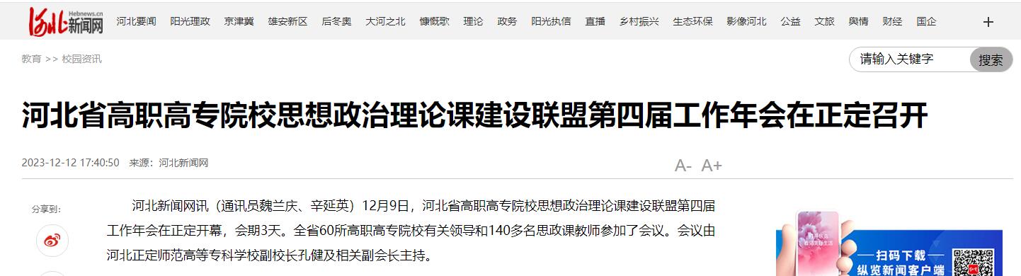 河北新闻网讯(通讯员魏兰庆、辛延英)12月9日,河北省高职高专院校思想政治理论课建设联盟第四届工作年会在正定开幕,会期3天。全省60所高职高专院校有关领导和140多名思政课教师参加了会议。会议由河北正定师范高等专科学校副校长孔健及相关副会长主持。