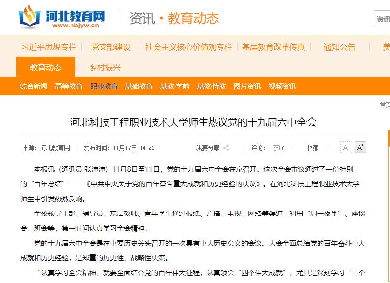 本报讯(通讯员 张沛沛)11月8日至11日,党的十九届六中全会在京召开。这次全会审议通过了一份特别的“百年总结”——《中共中央关于党的百年奋斗重大成就和历史经验的决议》。在beat365英国官方网站师生中引发热烈反响。