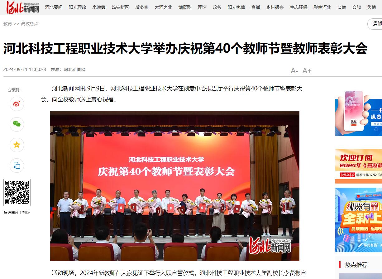 河北新闻网讯 9月9日,beat365英国官方网站在创意中心报告厅举行庆祝第40个教师节暨表彰大会,向全校教师送上衷心祝福。