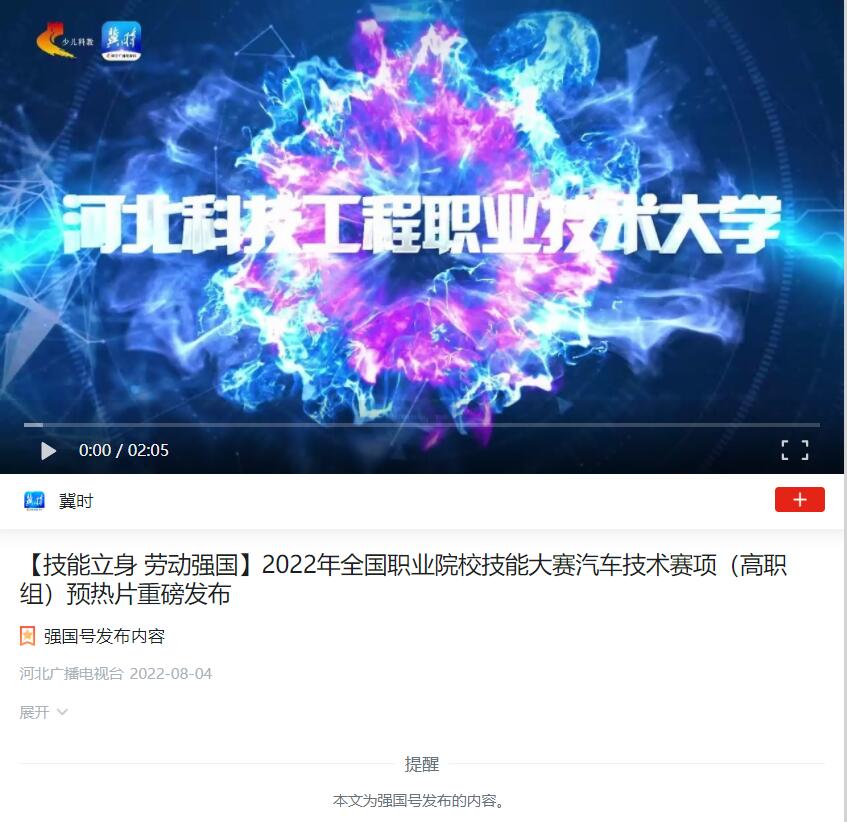 下一篇:河北广播电视台:【技能立身 劳动强国】2022年全国职业院校技能大赛汽车技术赛项(高职组)预...