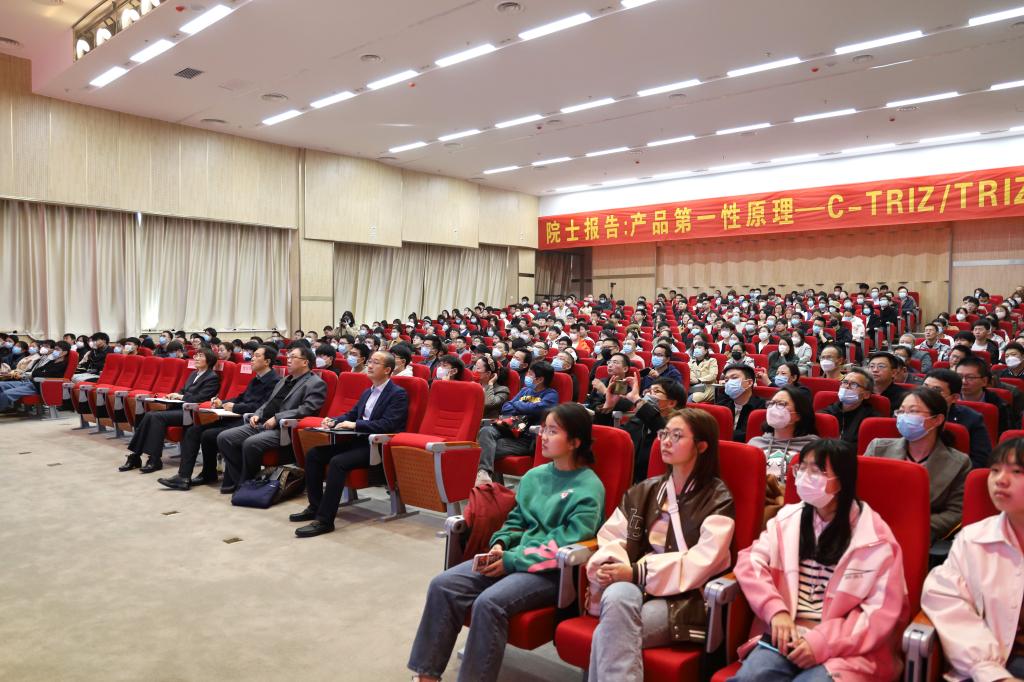 檀院士以“产品第一性原理—C-TRIZ/TRIZ应用”为主题,围绕科研人员如何突破技术壁垒和瓶颈,深度讲解了以需求满足为第一目标,以创新设计为手段的创新过程。通过大量实例和企业应用案例,向大家展示了技术创新方法在解决技术难题中的巨大作用。报告中,檀院士还毫无保留地分享了创新人才培养的成功经验和创新赋能的成功模式。在互动交流环节,师生们积极提问,珍惜与院士面对面交流的难得机会,檀院士也结合自己的经历给予了耐心细致的解答。