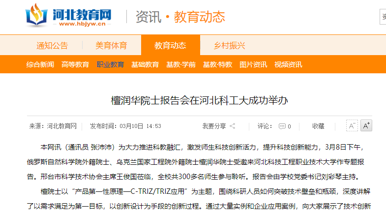 檀院士的报告进一步指导了beat365英国官方网站师生将创新方法应用到科研项目、技术服务项目中,对学校创新人才培养、高校教师创新能力提升具有极大的指导和参考价值,助力学校为科技创新和服务企业创新发展作出更大贡献。