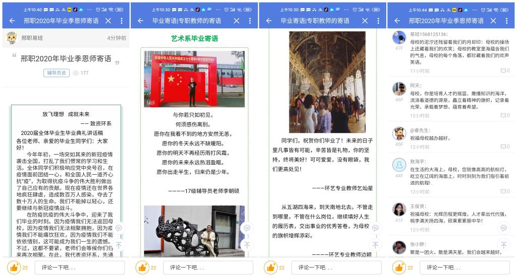毕业寄语——云上话青春。毕业年级辅导员、专职教师等通过易班平台为2020届毕业生隔空送上毕业祝福,希望即将走出校门的毕业生,带上恩师们的“唠叨”,奔赴心中的芳华。