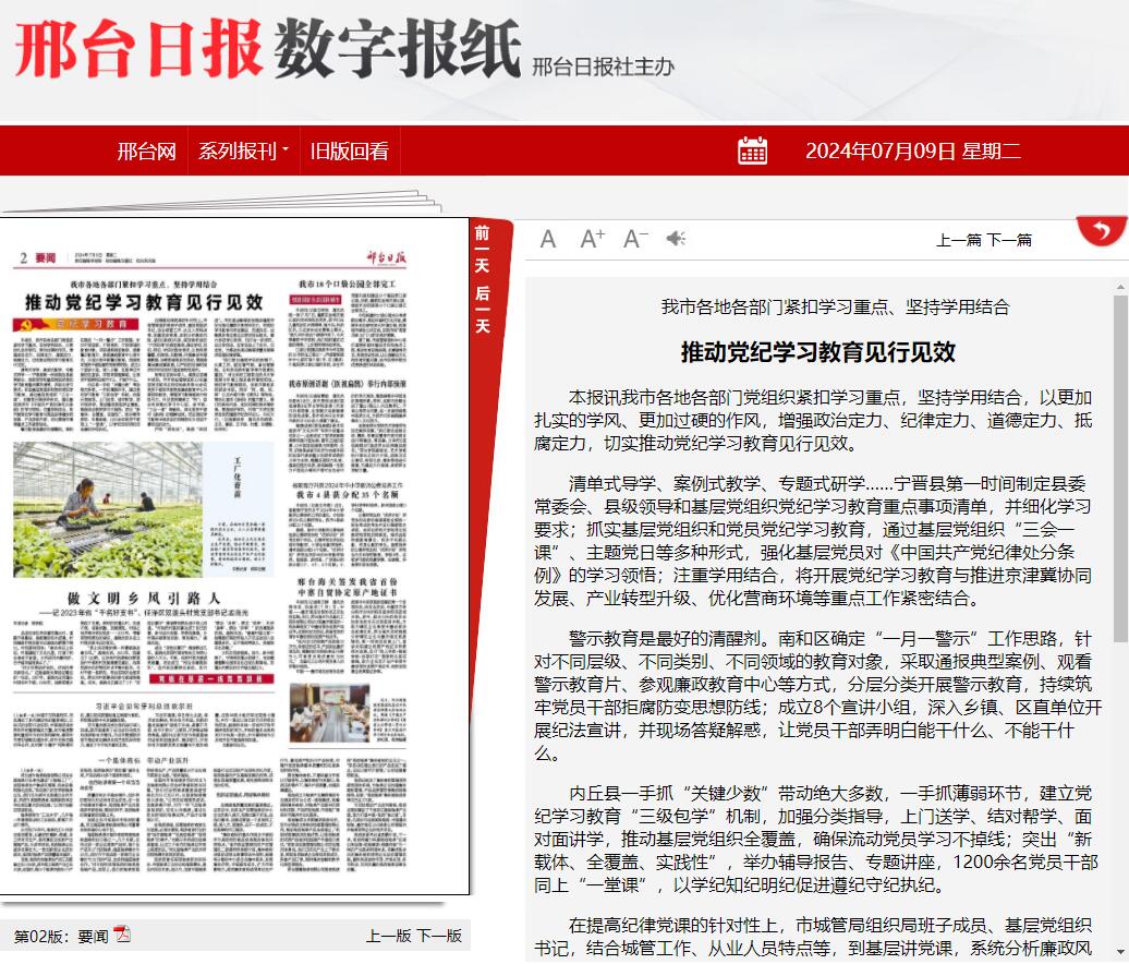 清单式导学、案例式教学、专题式研学……宁晋县第一时间制定县委常委会、县级领导和基层党组织党纪学习教育重点事项清单,并细化学习要求;抓实基层党组织和党员党纪学习教育,通过基层党组织“三会一课”、主题党日等多种形式,强化基层党员对《中国共产党纪律处分条例》的学习领悟;注重学用结合,将开展党纪学习教育与推进京津冀协同发展、产业转型升级、优化营商环境等重点工作紧密结合。