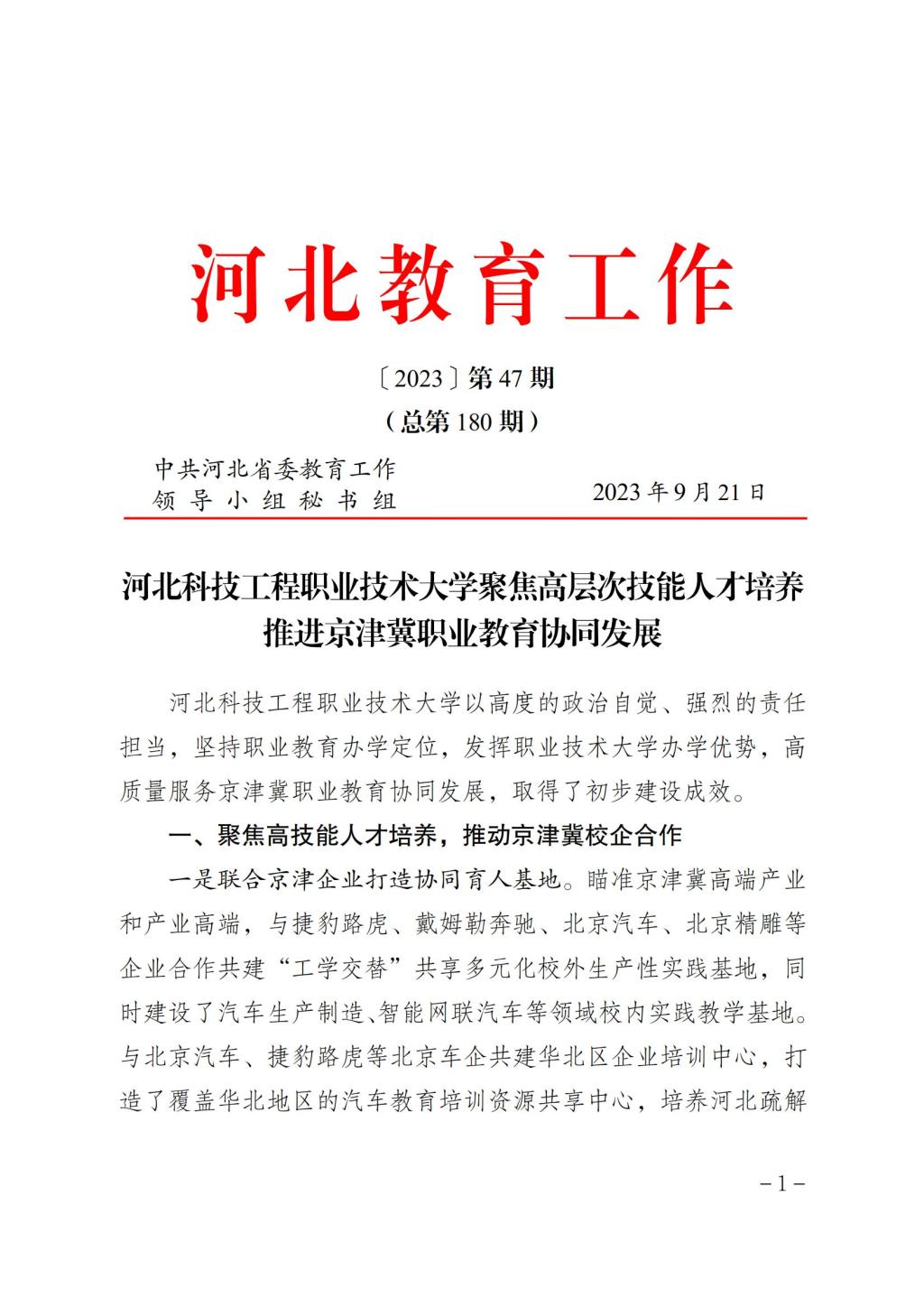 河北教育工作:beat365英国官方网站聚焦高层次技能人才培养 推进京津冀职业教育协同发展