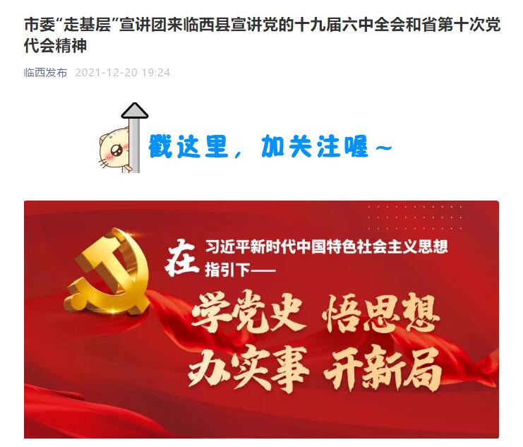 会议要求,全县各级各部门,要切实增强政治意识和责任意识,把学习宣传贯彻党的十九届六中全会和省委第十次党代会精神,作为当前和今后一个时期的重要政治任务,多形式跟进学习。要认真学习习近平总书记在全会上的重要讲话精神,深刻领会全会的重大意义和精神实质,真正把思想认识统一到全会精神上来,把行动凝聚到实现全会确定的各项目标任务上来。要坚持以学促做,知行合一,把学习全会精神与落实省委党代会精神结合起来,聚焦县委“一一四六”总体发展思路,盘点正在推进的党史学习教育、“三重四创五优化”等重点工作,对照年初制定的各项目标任务和重要改革事项,查漏补缺、跟踪问效,确保完美收官,把全会精神落实到完成目标任务的实际行动中。要深入学习和思考,分析研判当前发展新形势,精心研究谋划明年目标任务,进一步形成发展共识,明确发展思路,创新工作举措,切实将学习成果转化为奋进新时代的强大动力。要用好新时代文明实践中心(所、站)等基层文化阵地,用活“小马扎”“流动党校”、文艺汇演等宣讲载体,以群众喜闻乐见的形式推进全会精神“六进”工作。要统筹各类媒体资源,开展全方位多角度宣传,对全会精神深入浅出地宣传阐释,宣传好各级各部门贯彻落实全会精神的典型做法和工作亮点,为统一思想、统一行动,推进临西高质量赶超发展凝聚强大合力。