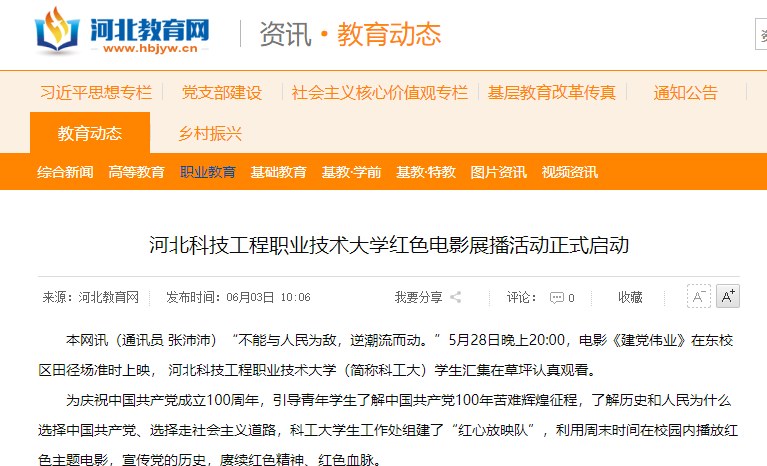 通过观影,同学们能更直观的了解中国共产党的奋斗历程,希望青年学子能在党史中汲取自强奋进的磅礴力量,不断加强理论学习和实操技能,为实现现代化强国目标贡献力量。(来源 河北教育网)