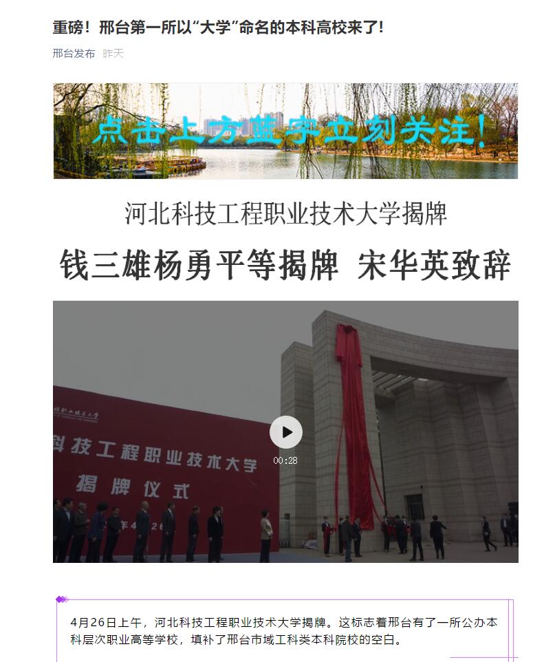 宋华英在致辞中表示,华北电力大学科技学院和邢台职业技术学院合并转设beat365英国官方网站,是落实习近平总书记对全国职业教育作出的重要指示批示的具体体现,标志着邢台高等职业教育迈上了新台阶。衷心期待beat365英国官方网站紧紧抓住合并转设的重大契机,立足产业发展和社会需求,秉承两校优良传统,持续创新,努力培养出更多的能工巧匠、大国工匠。市委、市政府将尽最大努力为学校的发展壮大提供全方位的优质服务,创造良好的发展环境。同时,衷心希望华北电力大学给予更多指导和帮助,强化与邢台全方位交流,推进校地双方更深层次、更多领域的多元化务实合作。