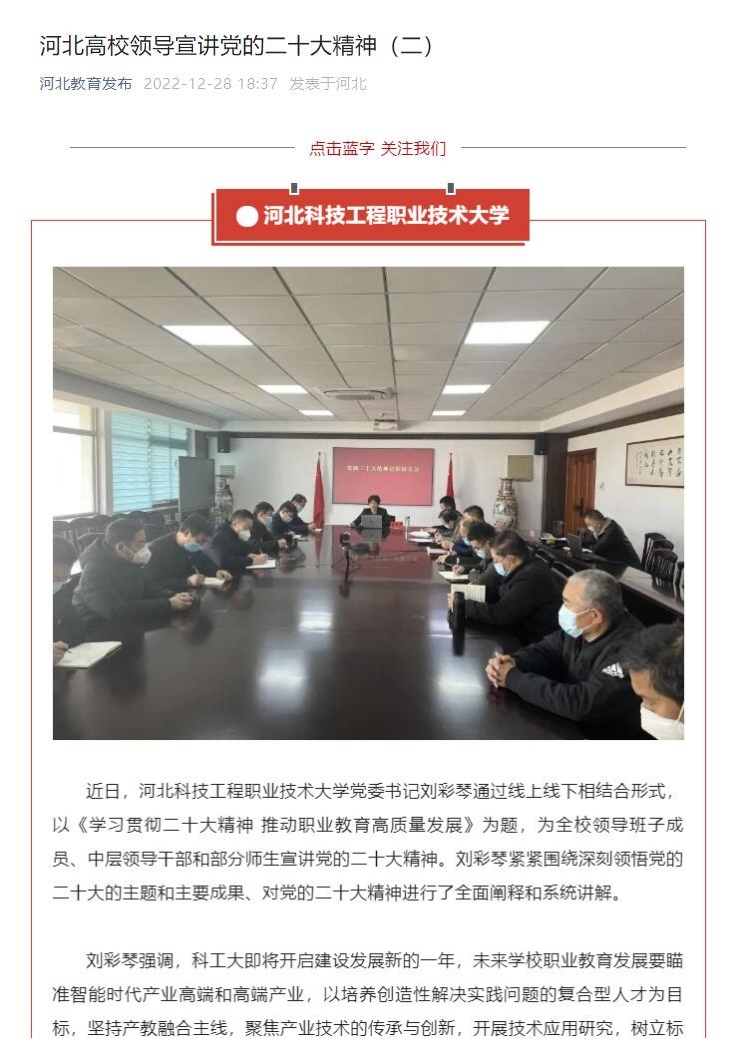 一场场生动的宣讲,一次次热烈的讨论,河北广大干部师生必将学思悟透党的二十大精神,凝心聚力,奋力推进中国式现代化河北教育场景建设。