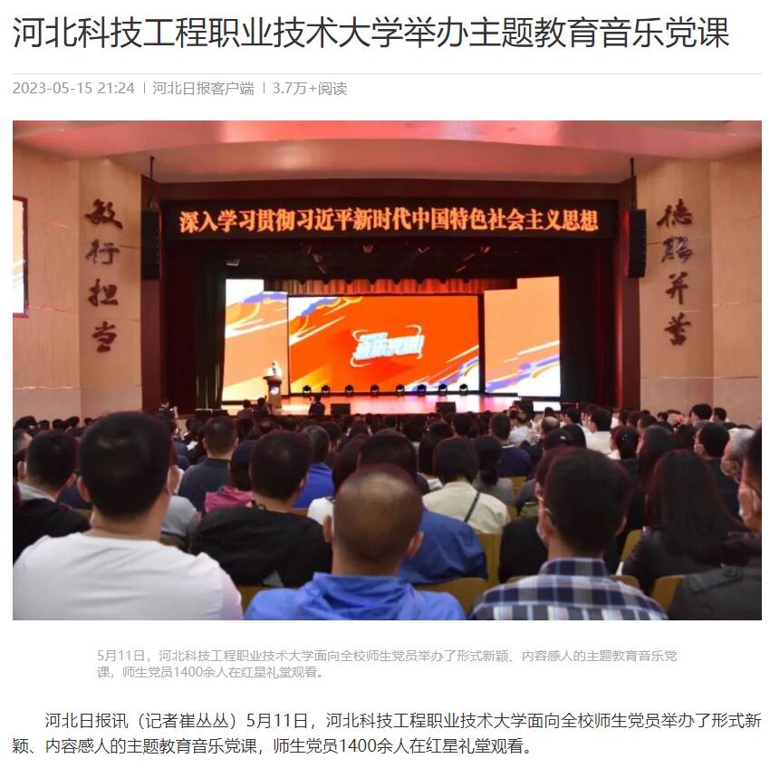 河北日报讯(记者崔丛丛)5月11日,beat365英国官方网站面向全校师生党员举办了形式新颖、内容感人的主题教育音乐党课,师生党员1400余人在红星礼堂观看。