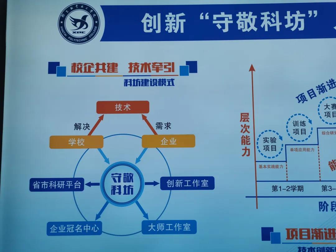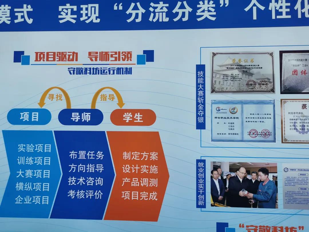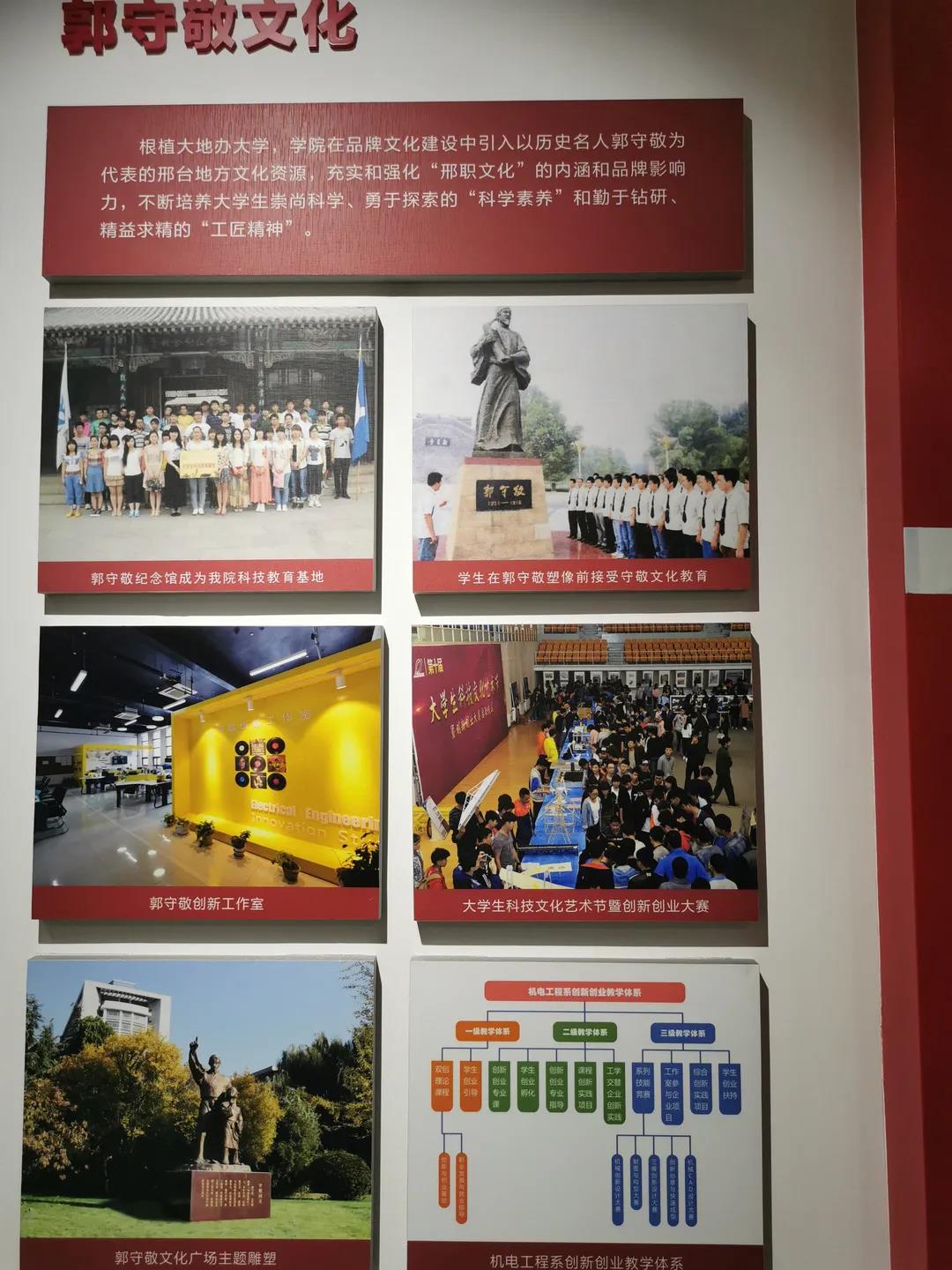 元代科学家郭守敬是邢台人。电气工程系以守敬创新工作室为抓手,打造了“守敬科坊”育人模式,推出以“科技、创新、梦想”为主题的TID技能大赛活动月,并先后与世界500强企业德国西门子、瑞士ABB等共建校内实训中心,与江苏省汇博机器人技术股份有限公司共建“工业机器人应用编程1+X证书考核与管理中心”等等。