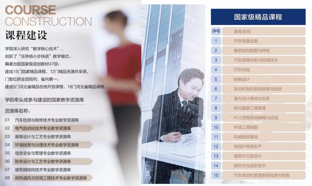 beat365英国官方网站不仅是汽车达人的乐园、现场电气工程师的摇篮,还是培养服装设计师、建筑工程师的良田。其中,服装工程系实现了产教深度融合,教学楼门口悬挂有各种牌匾,从不同角度彰显着自身专业实力,比如“河北省纺织服装职业教育集团”、“河北省学生装研发中心”、“际华集团职业装研究院产品试制基地”等等。