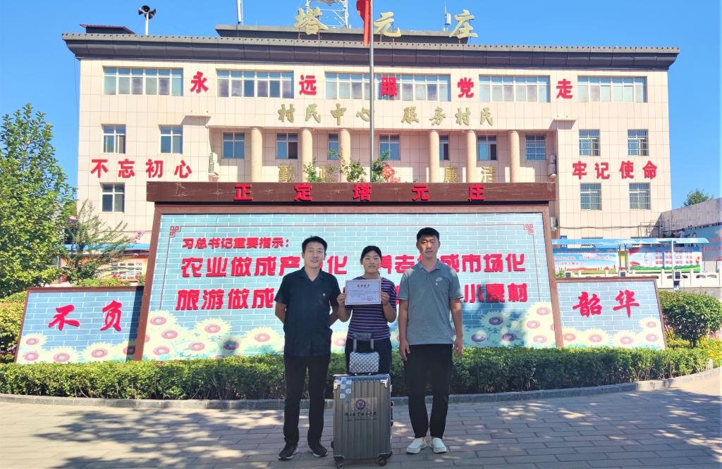 9月13日,学院团委书记卢磊和学生工作处教师李奕聪专程前往石家庄市正定县塔元庄为王玉洁同学送行。在王玉洁同学家中,两位老师详细解读了西部计划各项政策和生活保障情况,并为她发放纪念品,鼓励她在新的环境安下心、扑下身、扎下根,以实际行动回应习近平总书记“青年一代有理想、有本领、有担当,国家就有前途,民族就有希望”的嘱托,在祖国西部绽放青春风采,为学院增光。