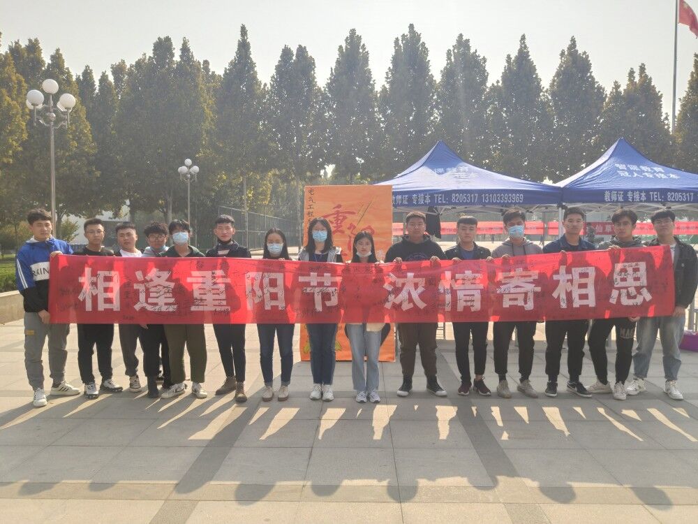 本网讯(通讯员 张沛沛) 金秋十月爽,九九话重阳。重阳节是中华民族的传统节日,是我国传统的尊老、敬老、爱老的日子,也是年轻一代向家中长辈传达敬爱之意的重要日子。为弘扬中华民族传统文化,传承中华民族传统美德,邢台职业技术学院电气工程系于10月25日重阳佳节之际,在学院西校区小广场举办了“相逢重阳节,浓情寄乡思”主题活动。活动为同学们免费提供明信片,大家现场书写,以一纸信片的方式,寄语家人深深的重阳节祝福。