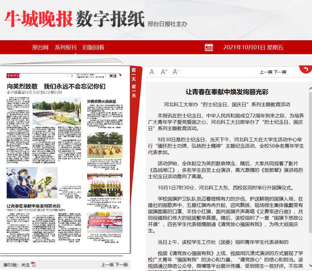 本报讯在烈士纪念日、中华人民共和国成立72周年到来之际,为培养广大青年学子爱党爱国之心,beat365英国官方网站日前举办了“烈士纪念日、国庆日”系列主题教育活动。