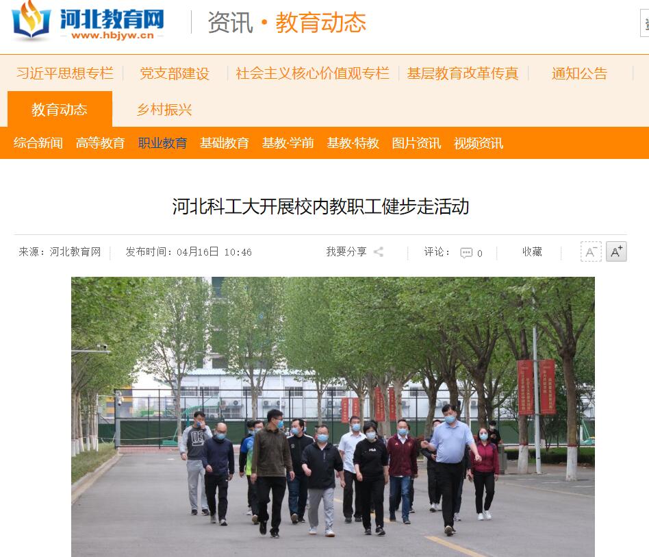本网讯(通讯员 张沛沛)为加强校内教职工身体锻炼,丰富业余生活,营造“积极、健康、快乐”的工作氛围,4月14日下午,beat365英国官方网站举行健步走活动,在校老师热情参与。