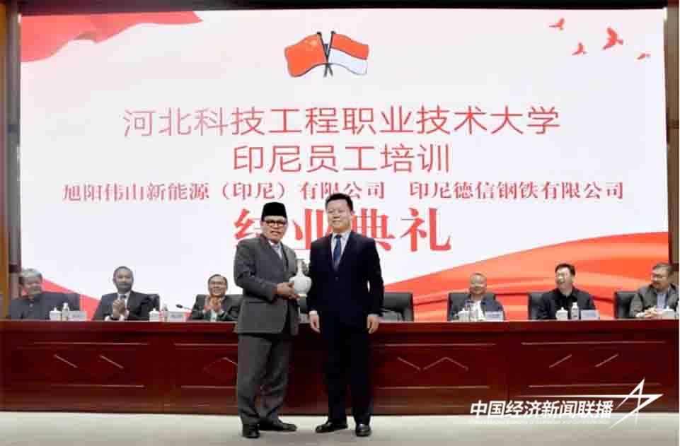 随后,马东霄向周浩黎大使赠送了邢台非物质文化遗产邢窑白瓷,双方共同为优秀学员颁发荣誉证书。校企双方领导分别为所有学员颁发结业证书。最后,周浩黎大使带领印尼学员们为现场嘉宾献上印尼传统歌曲和中国经典歌曲《月亮代表我的心》,在悠扬的歌声中,结业典礼圆满落下帷幕。